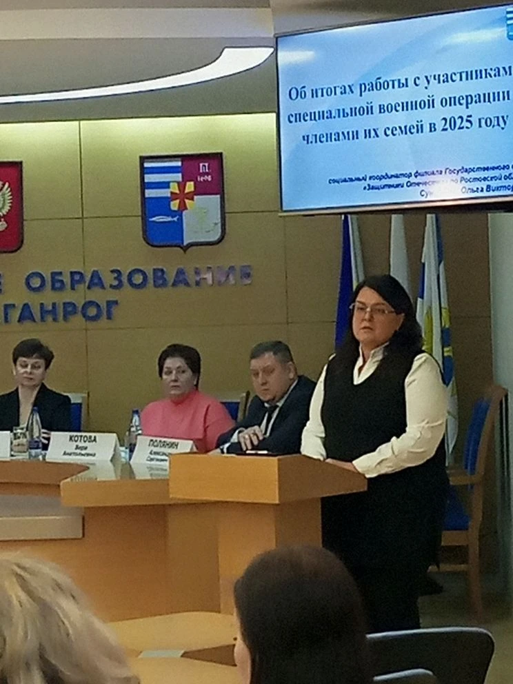 11 декабря 2025 года состоялось итоговое заседание межведомственной комиссии по координации оказания социальной поддержки и помощи участникам специальной военной операции и членам их семей под председательством первого заместителя главы Администрации города Таганрога Ирины Валериевны Голубевой.