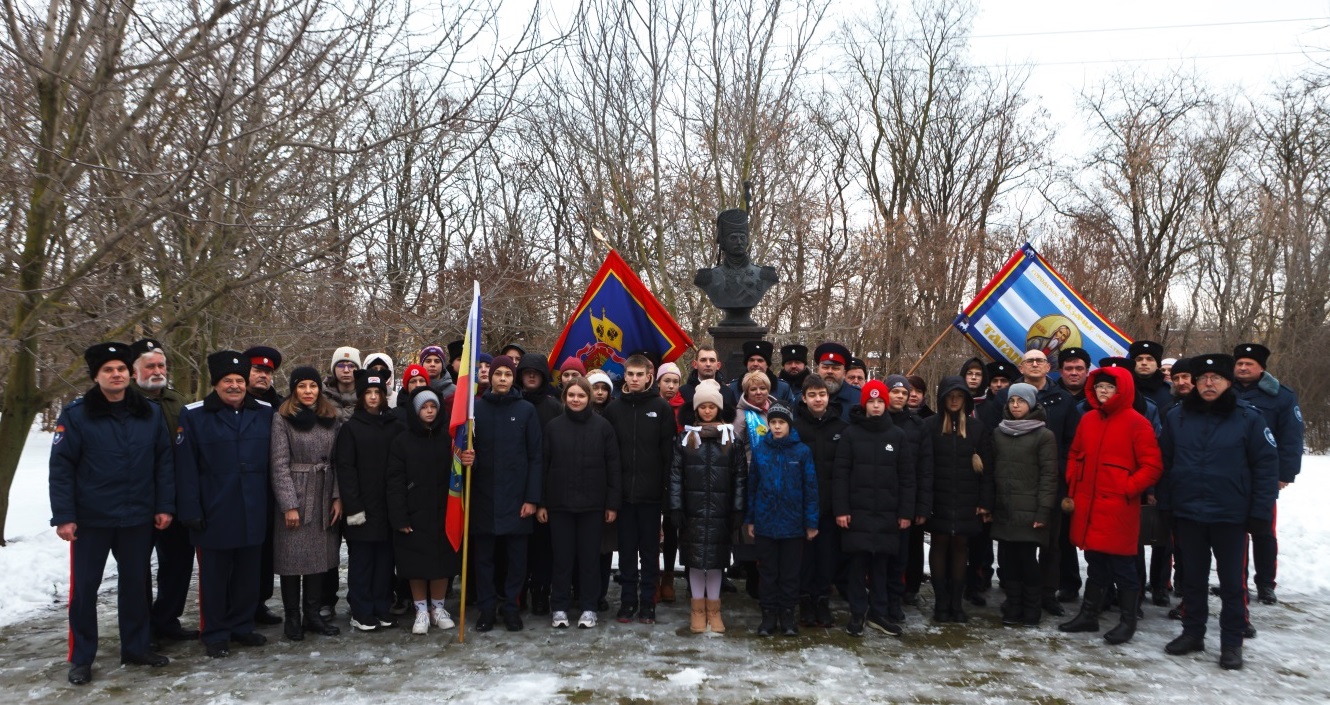 16 января у бюста атаману М.И. Платову, установленному напротив административного корпуса Таганрогского института им. А.П. Чехова, казаки ГКО «Таганрогское», воспитанники Таганрогского отделения КМДО «Донцы», учащиеся казачьих классов школ № 6 и № 26 во главе с атаманом городского казачьего общества войсковым старшиной Иваном Надолинским отдали дань памяти легендарному вихрь-атаману Войска Донского Матвею Ивановичу Платову.
