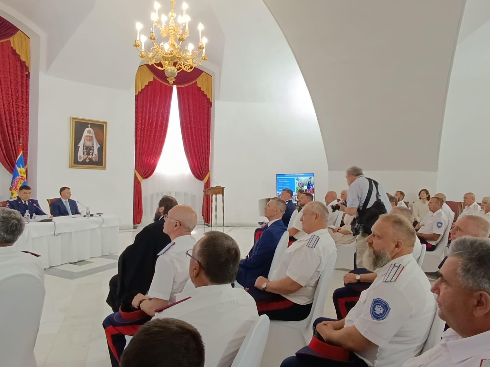 На праздничное богослужение в Новочеркасском Патриаршем Вознесенском войсковом всеказачьем соборе собрались казаки и старики из близлежащих округов и юртов войскового казачьего общества «Всевеликое войско Донское», участники СВО, казачья молодежь и прихожане.