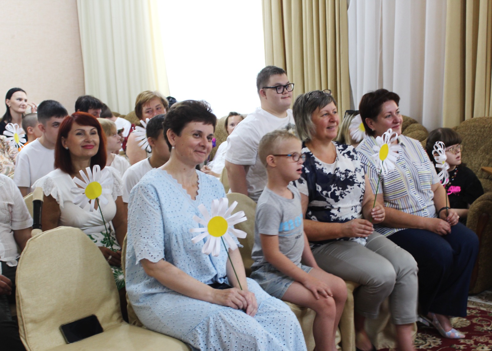 По доброй традиции родителям участников клуба подарили ромашки, сделанные руками волонтеров отряда "Открытые сердца" (Центр внешкольной работы г. Таганрога) и Центра социального обслуживания, которые сопровождали детей на протяжении всей 2-й смены.