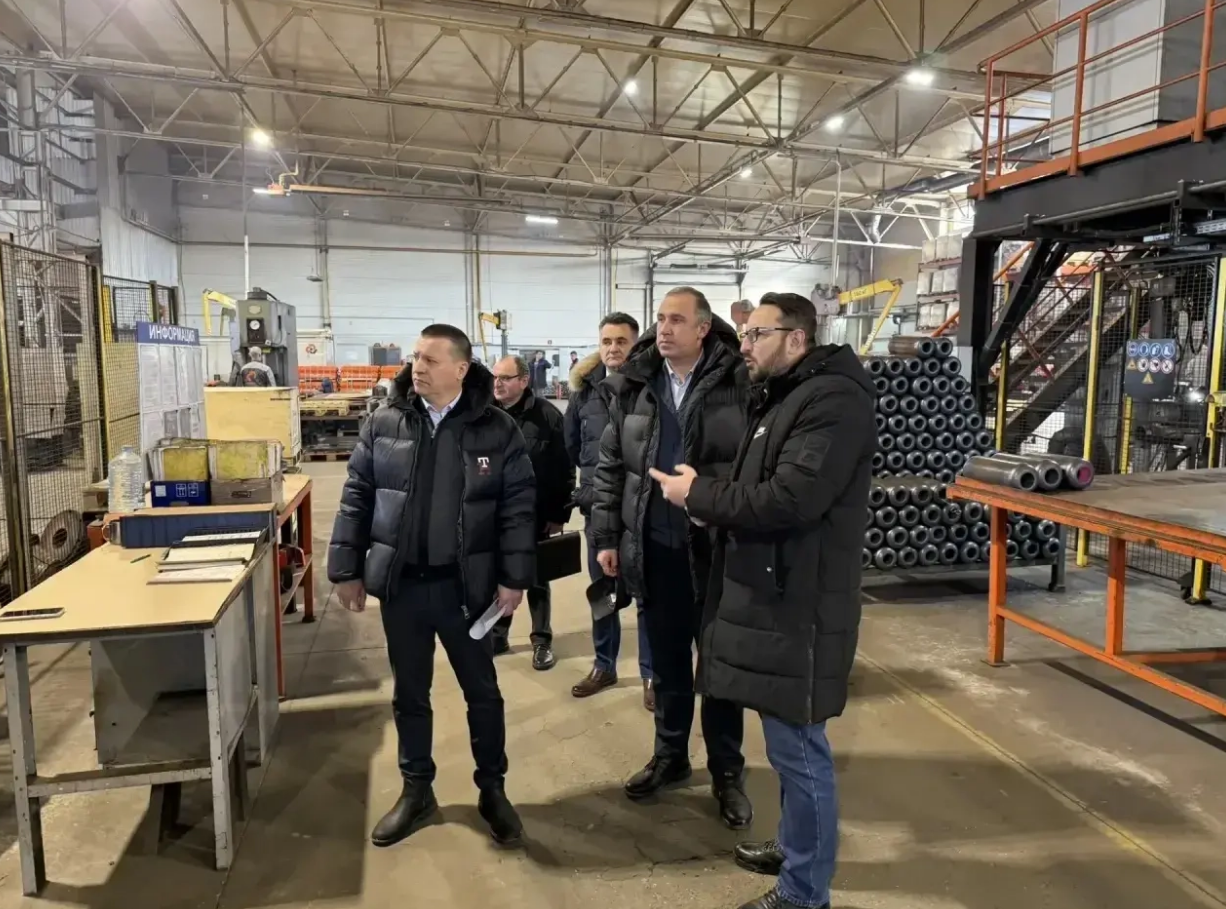 Первым в программе визита стало предприятие АО «ПромТяжМаш», основным направлением деятельности которого является проектирование и производство ленточных конвейеров, горно-шахтного, цементного, энергетического оборудования и металлоконструкций.