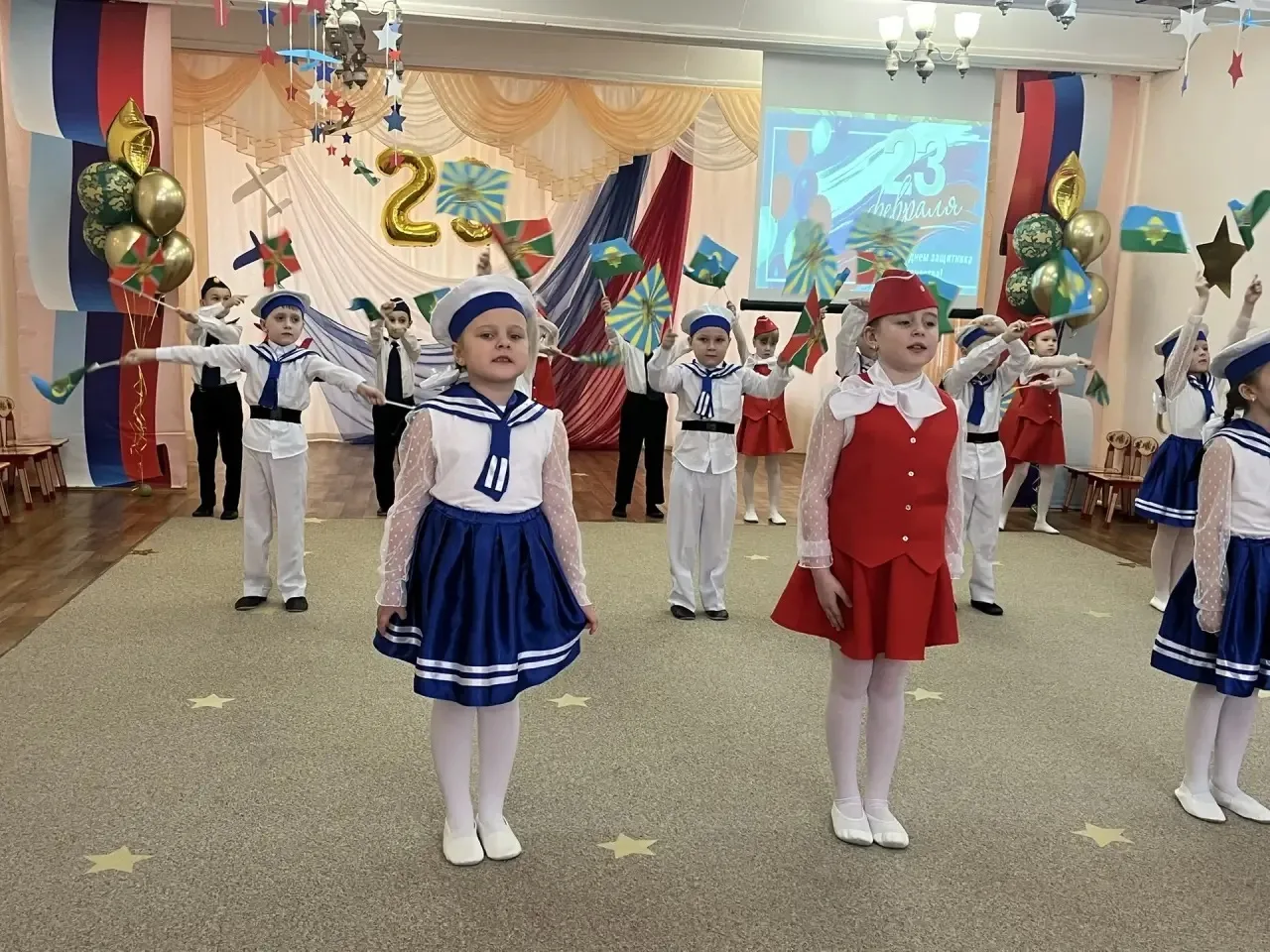 В детских садах на праздничных утренниках и спортивных соревнованиях с участием пап воспитанники закрепили знания о военных профессиях, технике и подарили своим отцам и дедушкам открытки и поделки, сделанные своими руками.