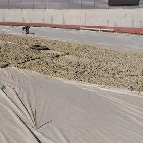 В настоящее время подрядчиком выполняются работы по подготовке основания для резинового покрытия.