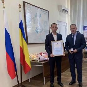 Министр региональной политики и массовых коммуникаций Дмитрий Шарков вручил диплом Правительства Ростовской области и специальный знак «Лучший муниципальный служащий» Александру Балаеву, начальнику отдела по работе с общественными объединениями Администрации города Таганрога, ставшему победителем конкурса в номинации «Лучший муниципальный служащий городского округа».
