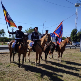 Почетный строй казаков Таганрогского казачьего округа достойно проявил себя во время торжественных мероприятий, они высоко пронесли знамя «Всевеликого войска Донского» в этот памятный для каждого жителя Ростовской области день.