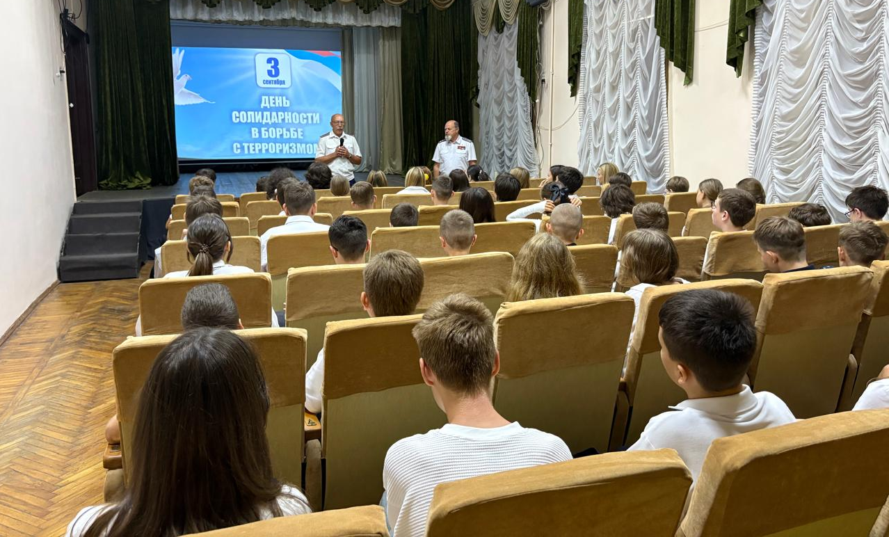 День посвящен почтению памяти жертв террористических актов и выражению единства общества и государства перед лицом террористической угрозы. В рамках памятного мероприятия, посвященного «Дню солидарности в борьбе с терроризмом», в Молодежном центре г. Таганрога казаками ГКО «Таганрогское» был проведен «Урок мира» для учащихся 6-7 классов МАОУ СОШ №10.