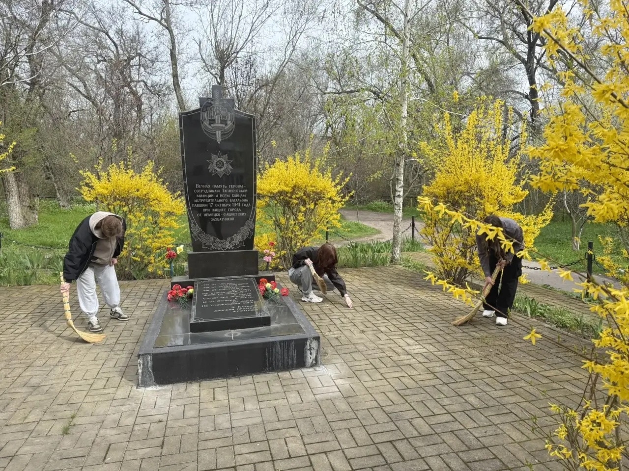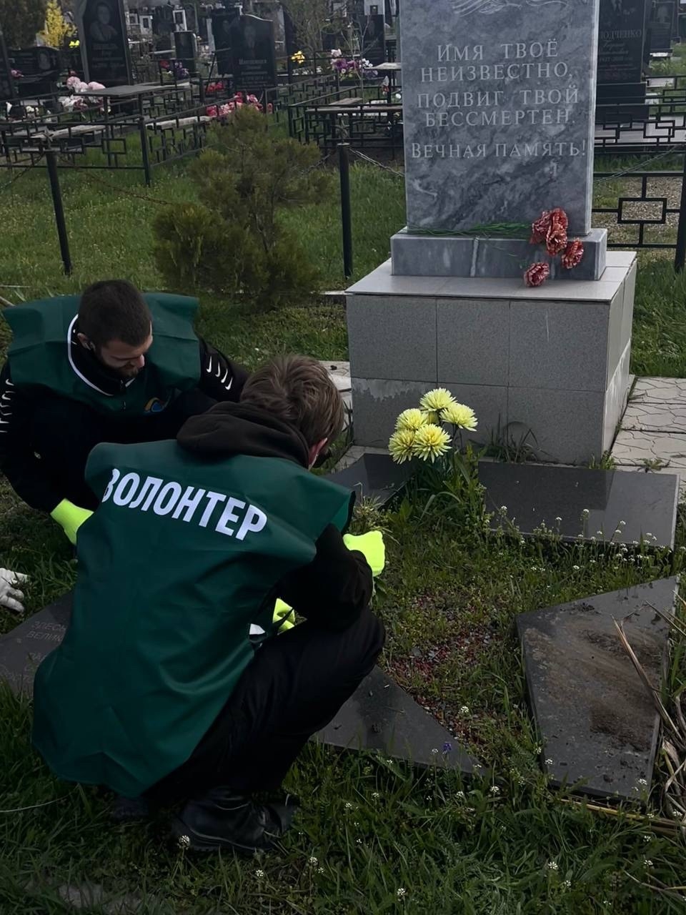 В Таганроге продолжается акция «Дон Помнит»,в рамках которой жители приводят в порядок памятные места, связанные с именами Героев Великой Отечественной войны, локальных конфликтов, специальной военной операции, иных военных конфликтов – памятники и мемориалы, воинские захоронения, обелиски и могилы.