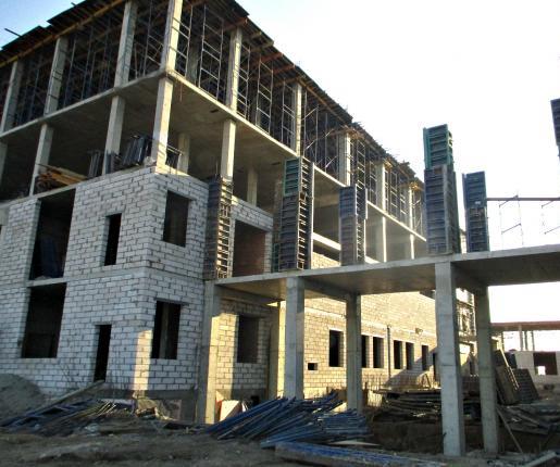 Подрядчик - ООО «Донская строительная компания» (ООО «ДСК») – ведет работу по нескольким блоках будущего здания школы: блок №1 – устройство монолитных колонн второго этажа, кладка перегородок и стен первого этажа; блоки №2 – устройство монолитных колонн, балок, перекрытия третьего и четвертого этажей, кладка кирпичных перегородок и наружных стен второго этажа; блок № 3 – устройство монолитных стен и колонн третьего этажа, устройство перегородок и стен первого этажа; блок № 4 – кладка кирпичных перегородок и наружных стен второго этажа, устройство монолитной плиты четвертого этажа, устройство колонн галереи №1, устройство перекрытия галереи №3.