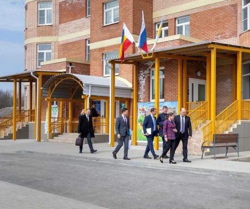 В ходе рабочей поездки заместитель губернатора и глава Администрации города Таганрога Михаил Солоницин посетили новый детский сад, «Росинка», возведенный по нацпроекту «Демография».
