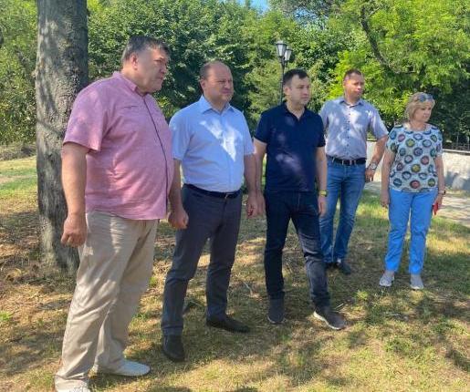 Следующей точкой стала роща "Дубки", где ведется благоустройство территории. Александр Скрябин отметил, что заметны положительные изменения. Ремонтируются лестницы, идет реконструкция ливневой канализации, запланирован замена лавочек и урн.