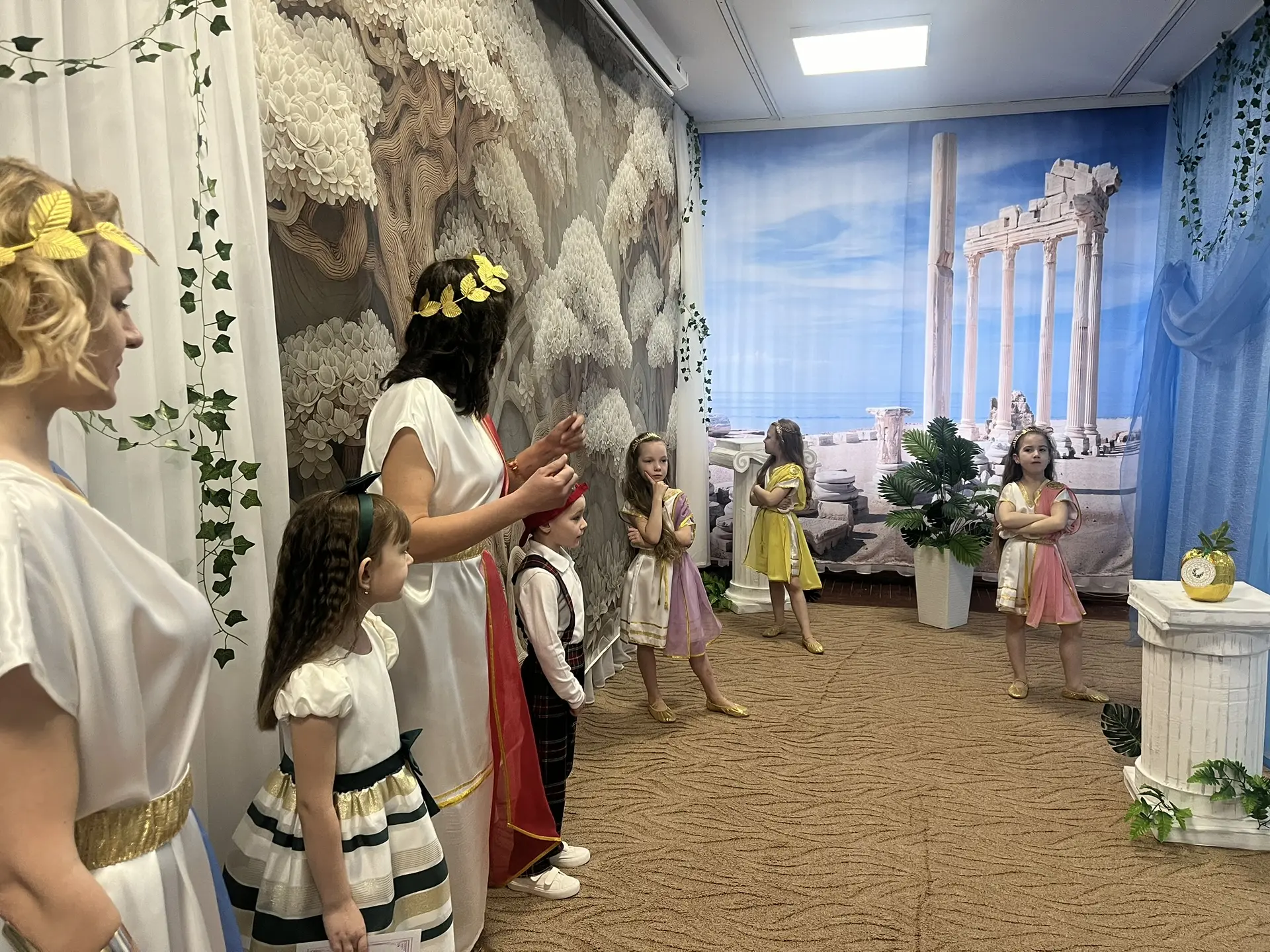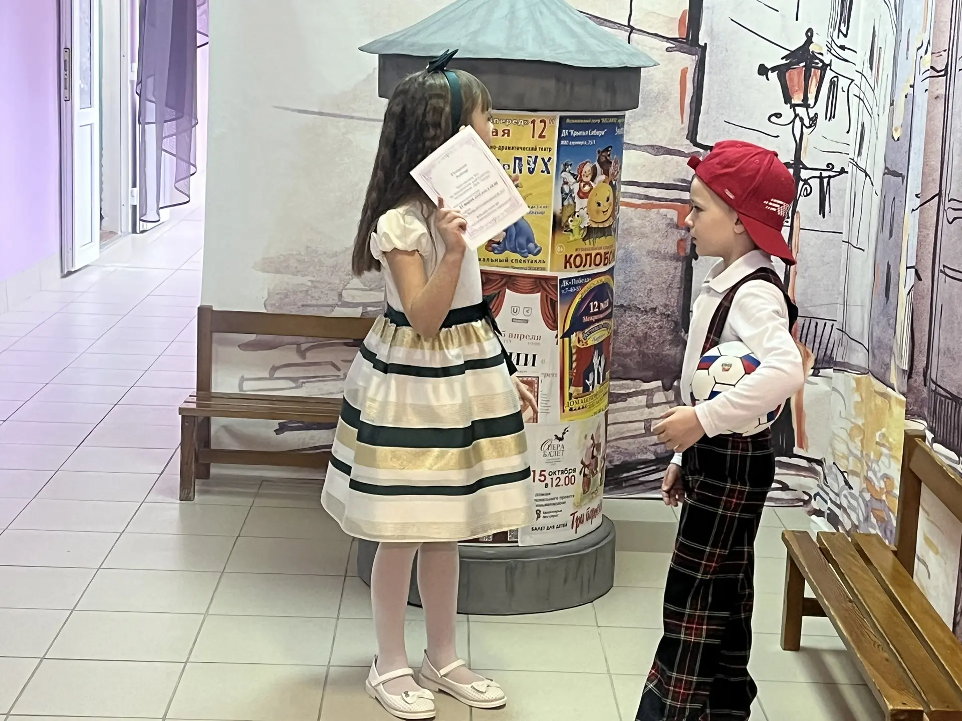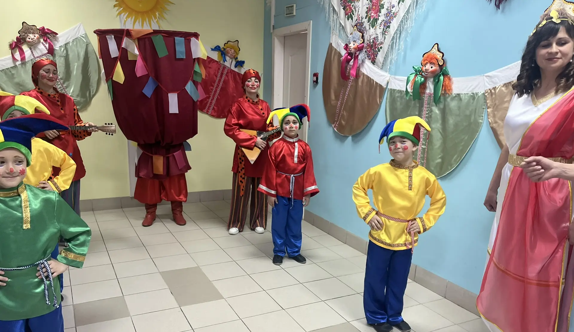 Праздничная программа открылась рассказом о театральных профессиях. Ребята узнали, что за кулисами, кроме актёров, трудятся сценаристы, режиссёры, костюмеры и декораторы. Дети с удовольствием отгадывали тематические загадки, пробовали себя в театральных этюдах, а затем и сами перевоплотились в артистов, разыграв импровизированные сценки.