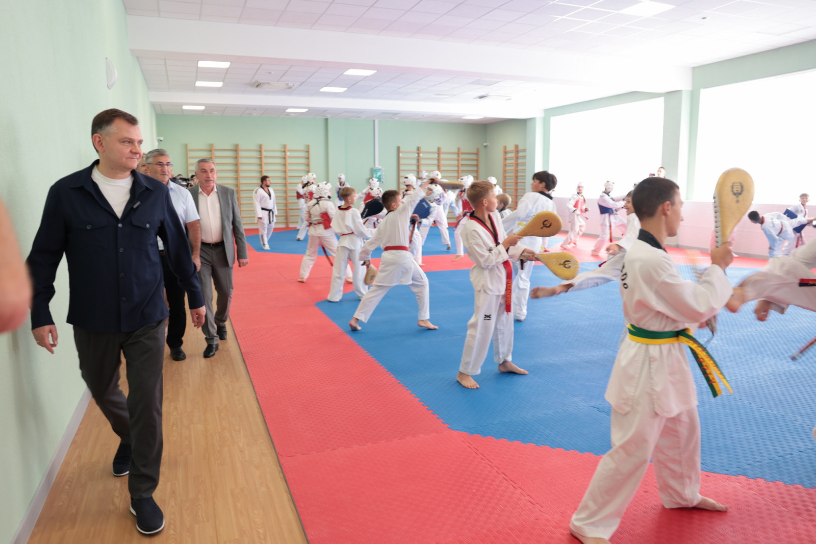 Юрий Слюсарь посетил обновленные помещения. Здесь появились два игровых зала с трибунами на тысячу мест, залы для прыжков на батуте, фехтования и греко-римской борьбы, а также тренажерный центр. Во время реконструкции подрядчик полностью заменил все инженерные системы, кровлю и окна, а также обновил фасад. На прилегающей территории обустроили новые открытые площадки для баскетбола, волейбола и тенниса.