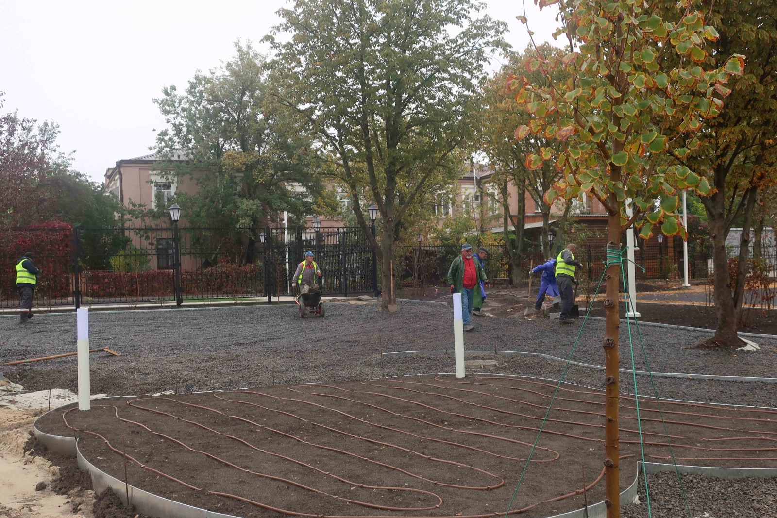 Сад преобразился, приобретя современный облик. Здесь появилось озеленение, наружное освещение и системы автополива. Подрядчик сейчас работает над дорожным покрытием и малыми архитектурными формами. Завершение всех работ запланировано на 10 ноября.