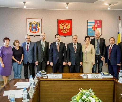 Сегодня немецкая делегация принимает участие в официальных мероприятиях, посвященных 320-летию основания Таганрога. Завтра планируются встречи со студентами и преподавателями ТИ им. А.П. Чехова (филиала) РИНХ и ТИУиЭ.