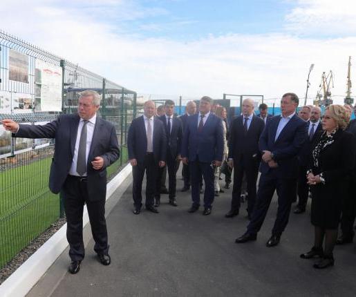 На площади у морвокзала губернатор представил Валентине Матвиенко образцы современной техники «Ростсельмаша». Василий Голубев рассказал о ходе строительства в Таганроге нового завода компании по производству тракторов.