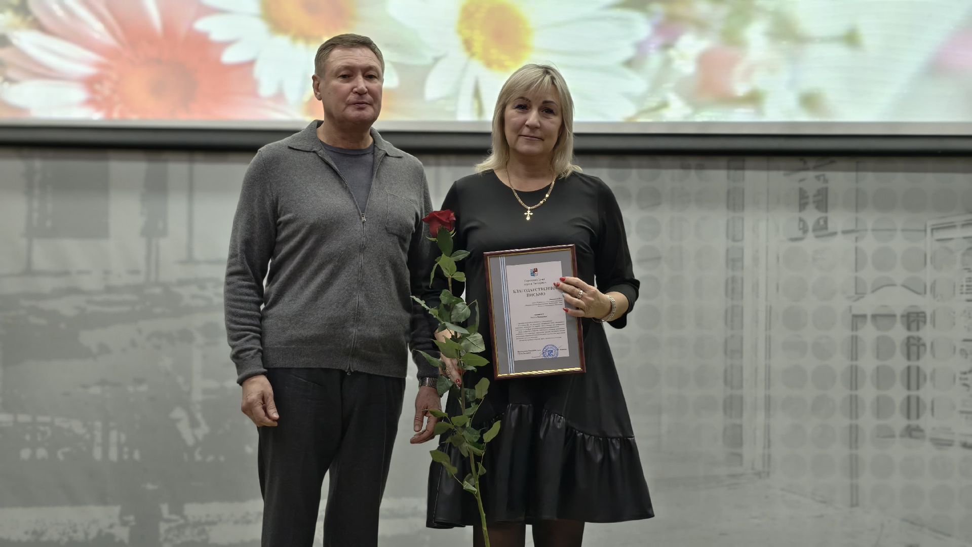 Екатерина Громыко от имени Главы города Таганрога Светланы Камбуловой вручила коллективу Ростовского областного отделения Общероссийской общественной организации семей погибших защитников Отечества в лице руководителя Эльвиры Иванкович Благодарственное письмо Администрации города Таганрога за плодотворную общественную деятельность, направленную на увековечение памяти погибших защитников Отечества, содействие социальной поддержке, защите прав и интересов семей погибших защитников Отечества, а также за активное участие в организации помощи участникам специальной военной операции.