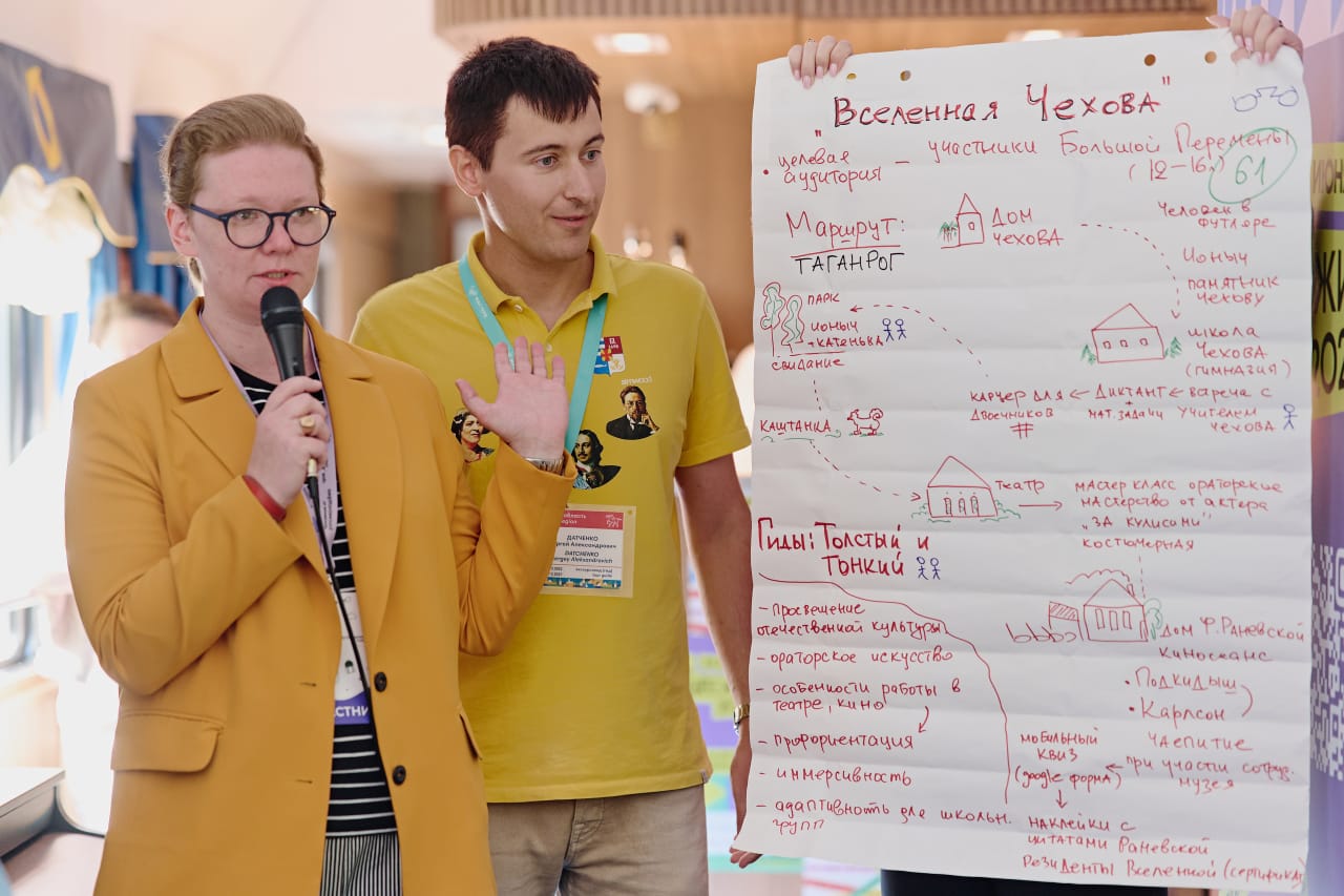Сергей Датченко создал маршрут по Таганрогу «Вселенная Чехова», который в результате открытого голосования получил высшие оценки от коллег и экспертов программы и стал лучшим из 70 проектов. Концепцию иммерсивной экскурсии «Вселенная Чехова» высоко оценил заместитель генерального директора программы «Больше, чем путешествие» Станислав Киреев. Разработанные идеи креативных молодежных экскурсий будут предложены для реализации в регионах победителей.