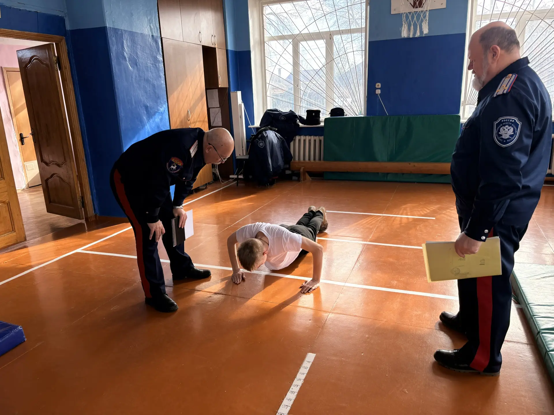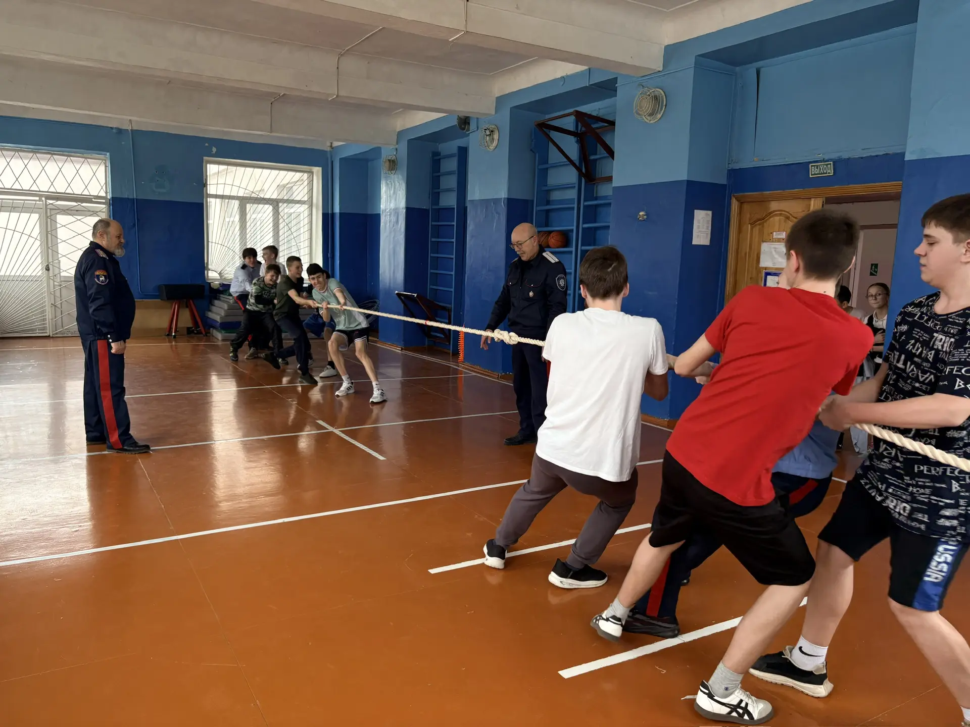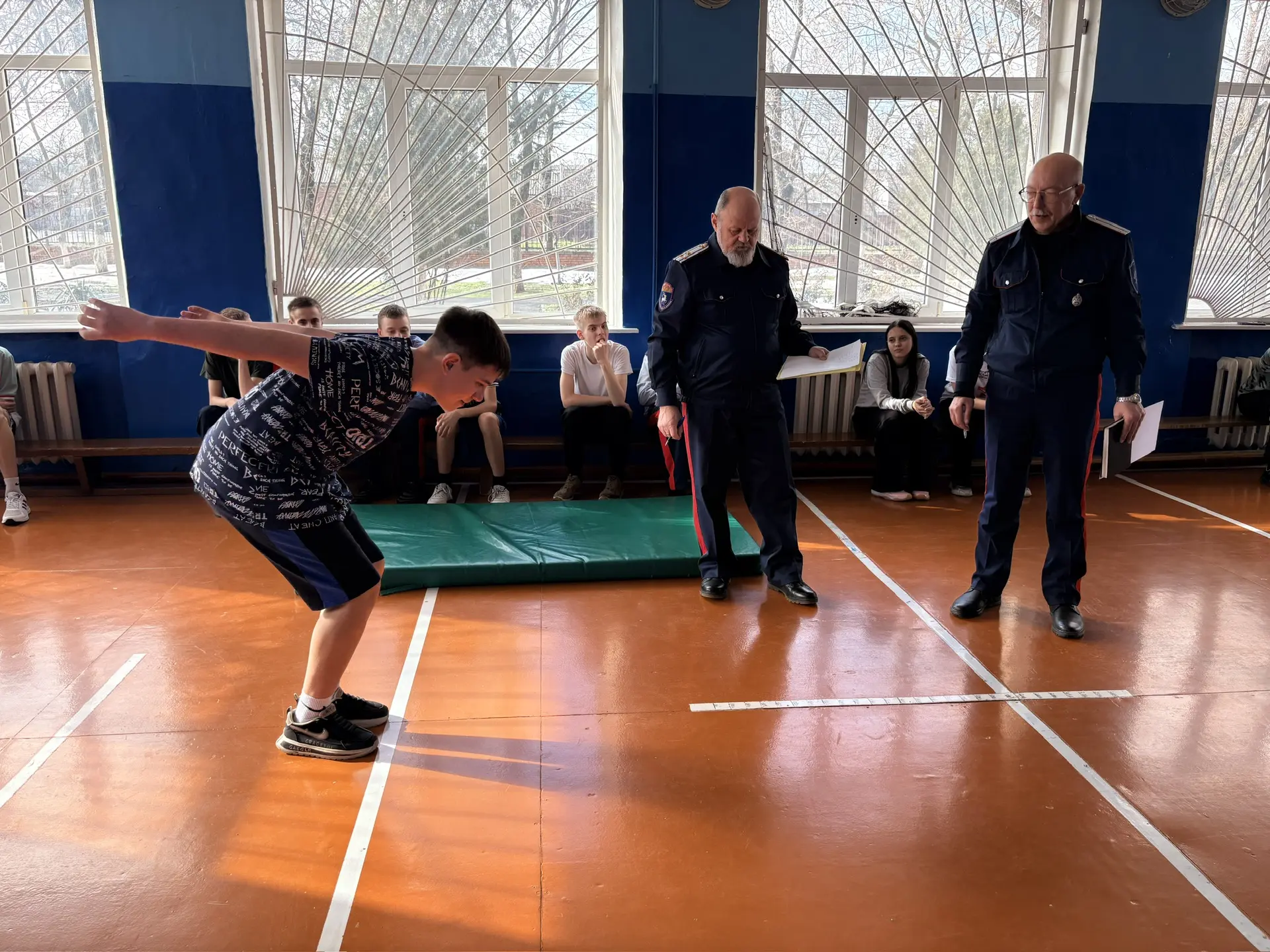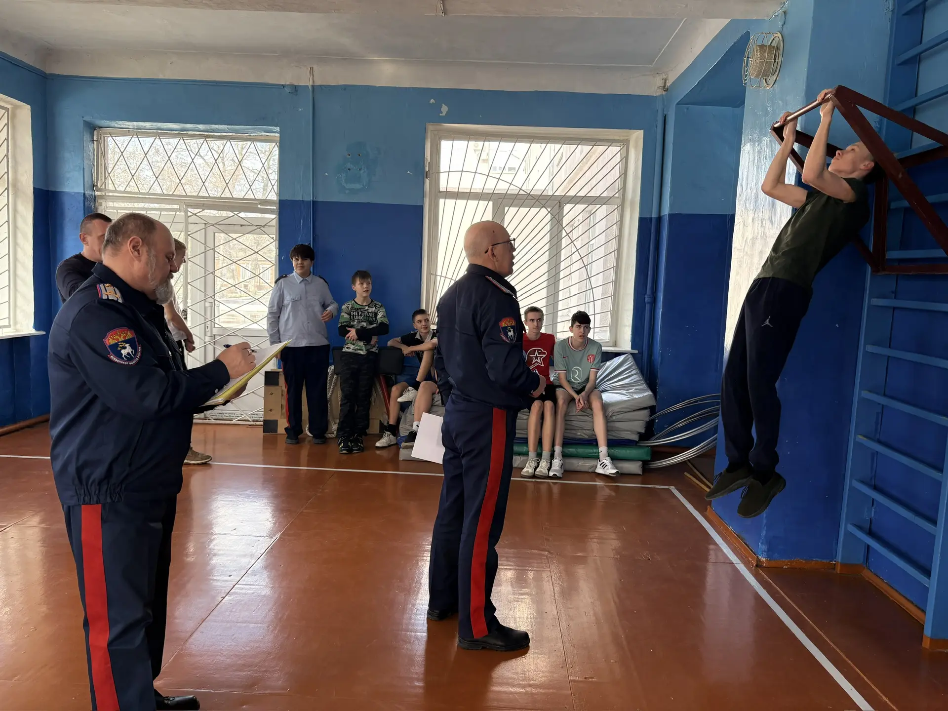 Ребята из «казачьих» классов соревновались в рамках выполнения «Обязательных испытаний», предусмотренных нормативами комплекса ГТО. Участники выполнили такие дисциплины, как: отжимание в упоре лёжа, подъём туловища из положения лёжа (пресс), прыжок в длину с места, подтягивании на высокой перекладине, наклон вперед с прямыми ногами, а также состязались в командном соревновании по перетягиванию каната. В ходе соревнования ребята продемонстрировали хорошую физическую подготовку, показав достаточно высокие результаты.
