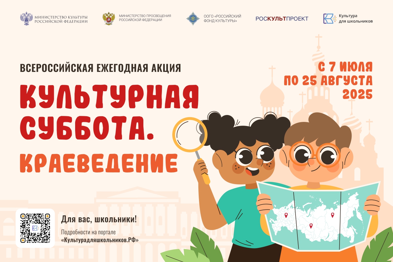7 июля в рамках межведомственного культурно-образовательного проекта «Культура для школьников» стартует всероссийская ежегодная акция «Культурная суббота. Краеведение», направленная на популяризацию традиций народов России.