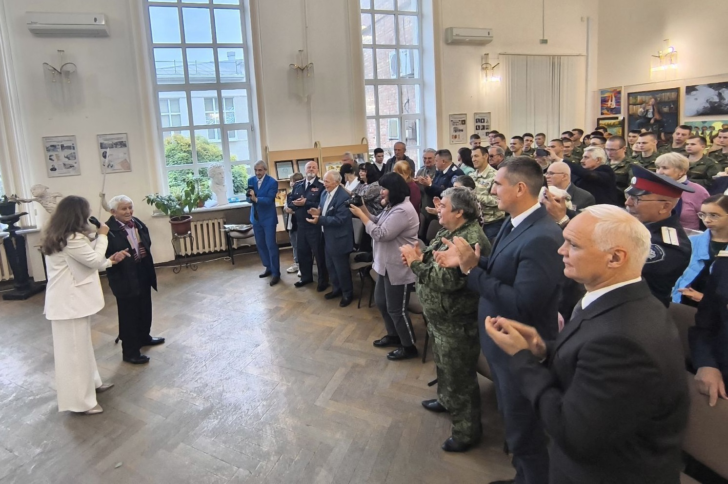 В числе участников праздничной встречи присутствовали ветераны, представители общественных городских ветеранских организаций, пенсионеры, а также представители молодого поколения таганрожцев – курсанты военно-учебного центра Южного Федерального Университета, что свидетельствует о важности межпоколенческого диалога и обмена опытом.