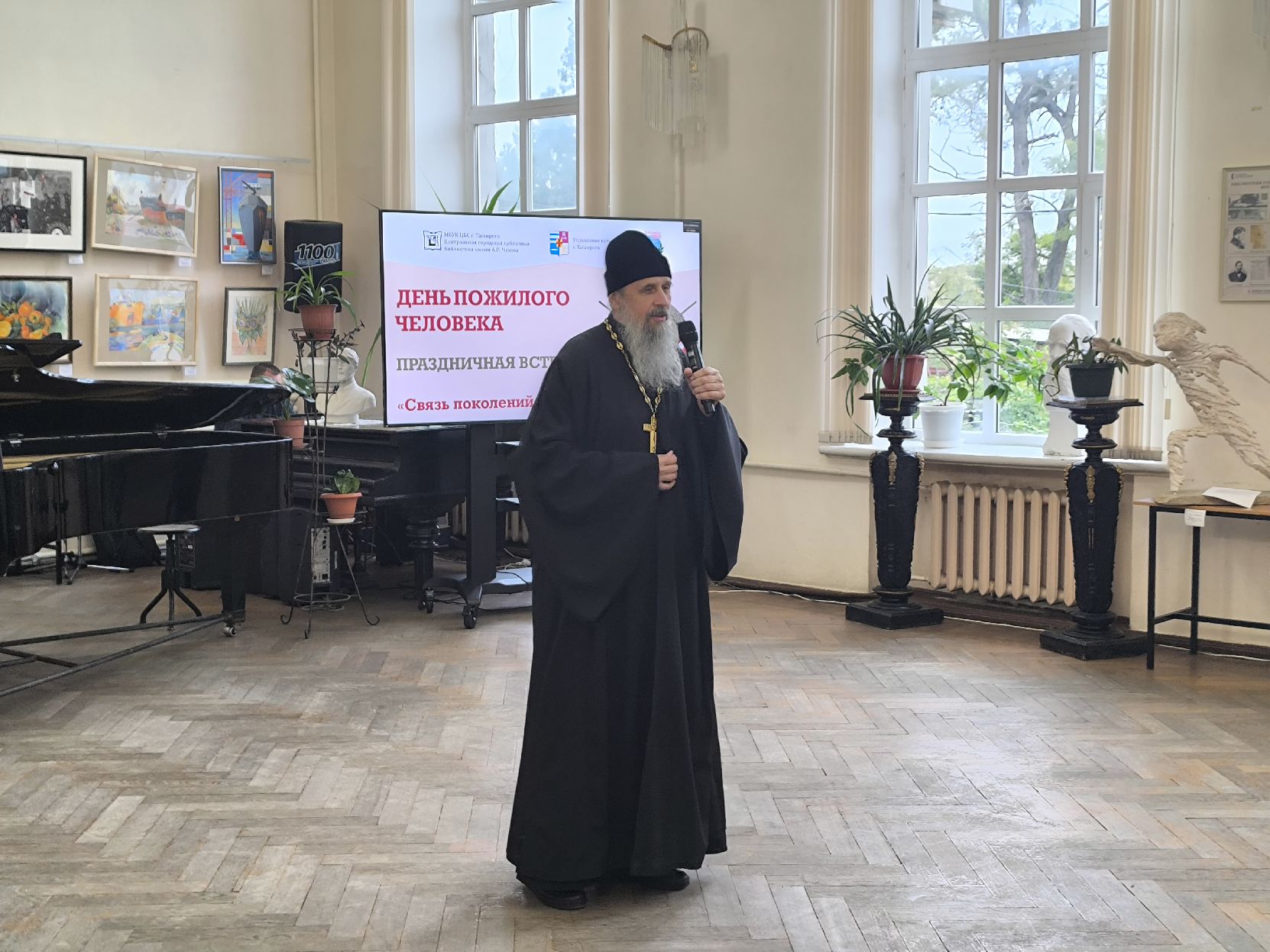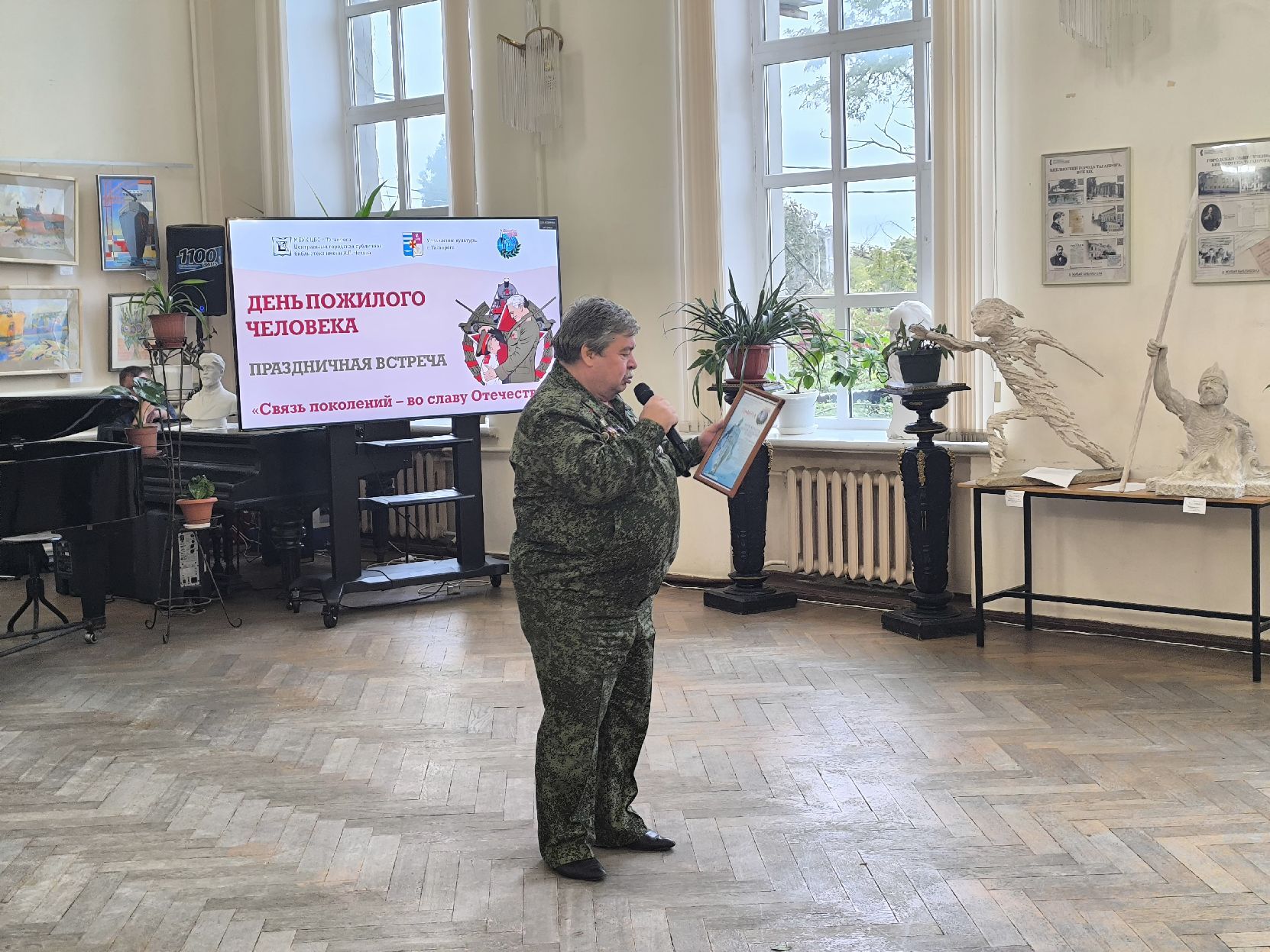 1 октября в выставочном зале Центральной городской библиотеки им. А.П. Чехова состоялось торжественное мероприятие «Связь поколений - во славу Отечества!», приуроченное к Международному Дню пожилого человека.
