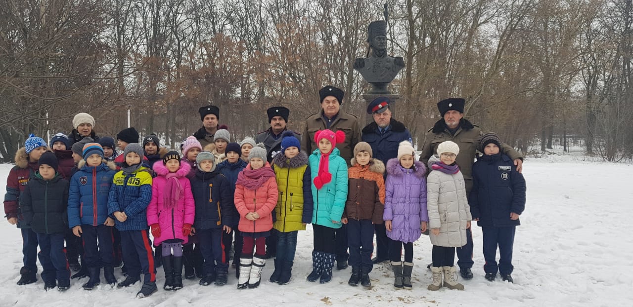 В день памяти легендарного Донского атамана Матвея Платова, скончавшегося 15 января (по современному стилю) 1818 года под Таганрогом, учащиеся казачьего класса школы № 6 и казаки Таганрога провели церемонию возложения цветов к бюсту героя Отечественной войны 1812 года.