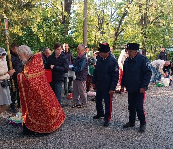 4 и 5 мая казаки городского казачьего общества «Таганрогское» во главе с атаманом Иваном Надолинским приняли активное участие в праздничных богослужениях, посвященных главному празднику христиан – Пасхе. Также в эти праздничные дни казаки несли службу в храмах и церквях города по обеспечению безопасности прихожан и недопущению противоправных действий.
