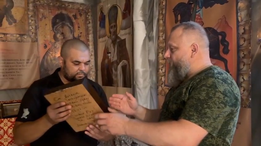 В составе гуманитарной помощи были продукты питания и элементы воинской экипировки. Особой частью груза стала икона «Спаситель», переданная казаками для полевого храма.