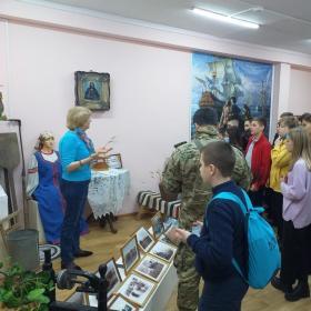 Казаки и учащиеся 5-10 классов школы № 26 посетили муниципальное учреждение «Районный краеведческий музей» в поселке Матвеев Курган. Целью экспедиции было обучение школьников подготовке и проведению экскурсий по краеведению.