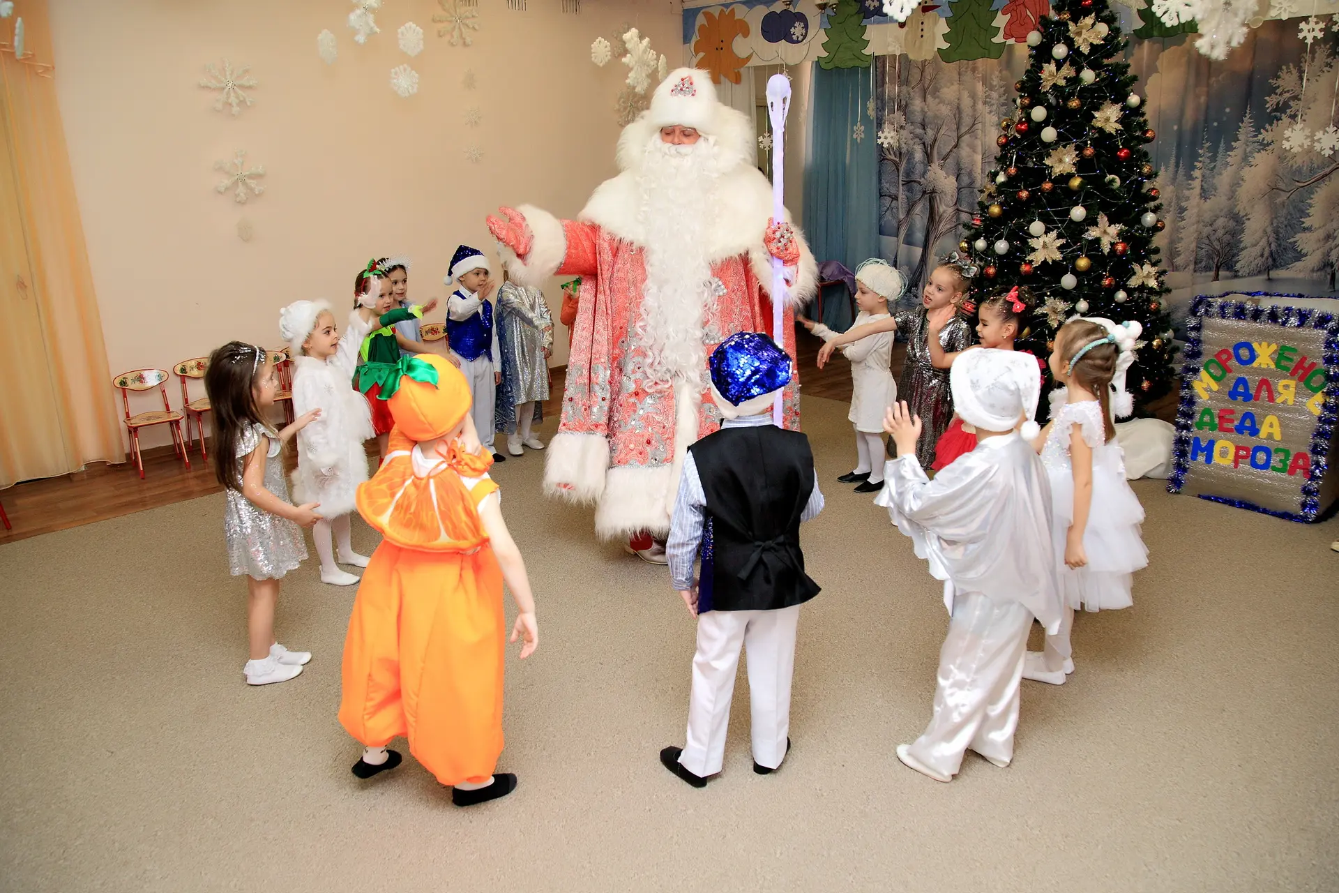 Яркие декорации, сверкающие гирлянды и наряженная ёлка создают неповторимое ощущение сказки, а радостные голоса детей и звонкий смех наполняют помещения теплом и весельем.