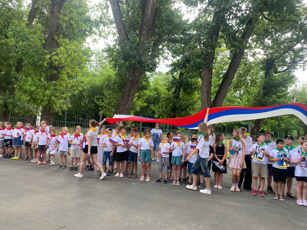 Воспитанники детских садов и пришкольных лагерей приняли участие в торжественных линейках, выставках, всероссийской акции «Окна России», флешмобах, концертах, онлайн конкурсе чтецов «С любовью о России».