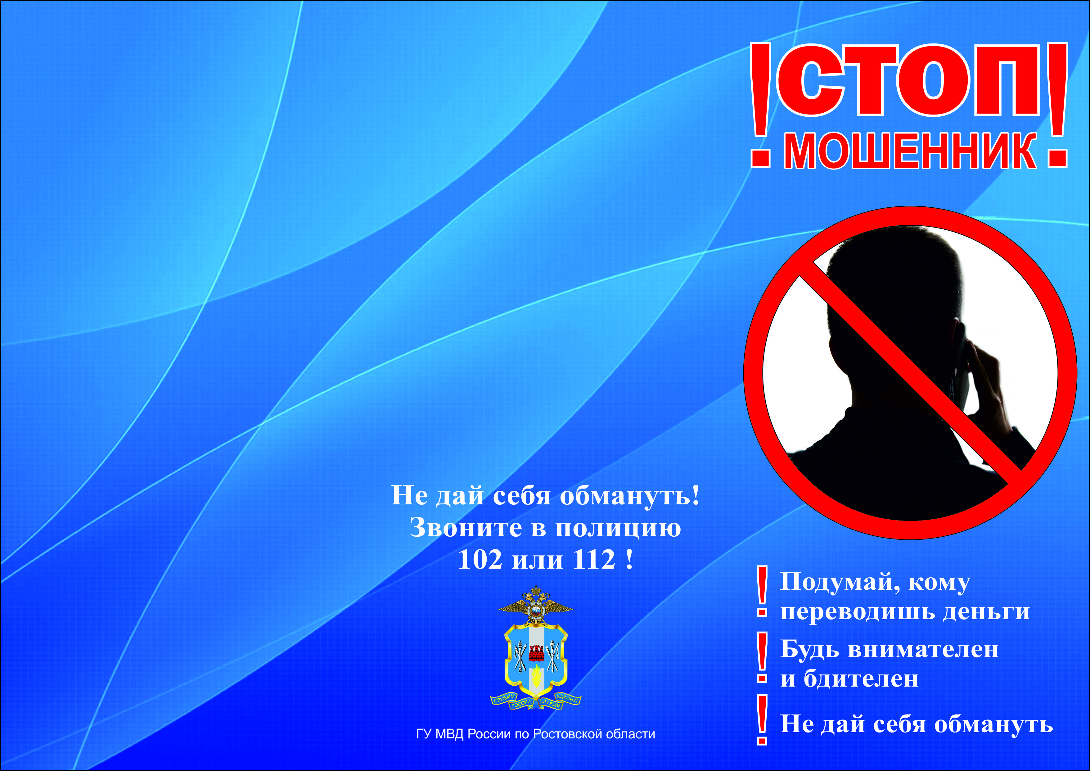 На территории Ростовской области продолжается профилактическая акция «Стоп, мошенник». Мероприятие направлено на предупреждение фактов мошенничества с использованием средств связи, сети «Интернет», электронных платежных терминалов и пластиковых карт.