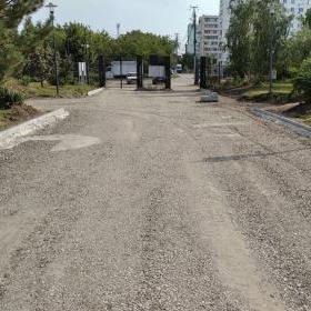 Подрядчиком выполнен монтаж бордюрных камней на центральной аллее, произведено уплотнение песчано-щебеночного основания, начат монтаж бордюрных камней велодорожки.
