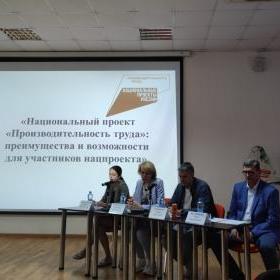 С презентацией нацпроекта «Производительность труда и меры адресной поддержки предприятий-участников» выступил руководитель центра компетенций в сфере производительности труда Олег Белицкий, отметив критерии по которым предприятия могут стать участниками проекта.