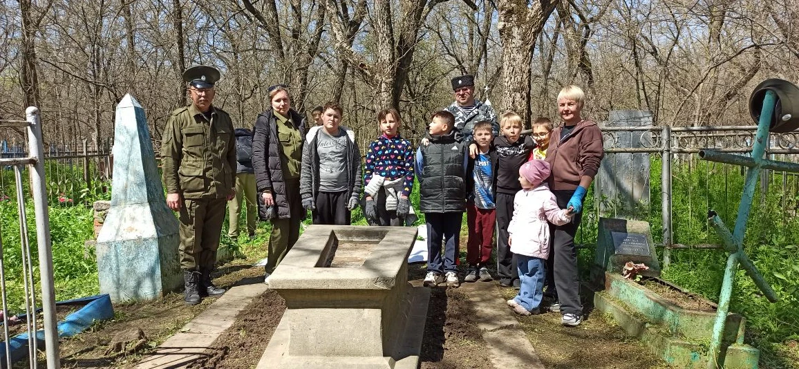 Кроме того, для ребят была проведена экскурсия, в ходе которой дети посетили могилы казачьих офицеров: полковника Николая Алексеевича Редичкина (1845–1895 гг.), ротмистра Василия Ивановича (1864–1889 гг.) и хорунжего Иосифа Ивановича (1866–1900 гг.) Евстратовых, а также есаула Якова Павловича Секретева (1847–1900 гг.).