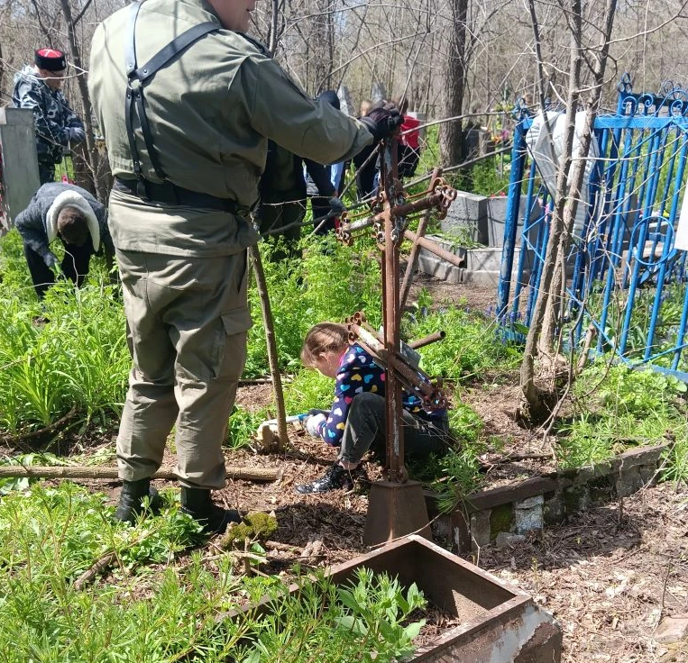 25 апреля 2026 года казаки городского казачьего общества «Таганрогское» во главе с атаманом войсковым старшиной Иваном Надолинским, воспитанники казачьего кадетского корпуса «Донцы» из казачьих классов МБОУ СОШ № 26 и ПВПЦ «Пересвет» собрались на территории Старого кладбища при храме Всех Святых. Атаман поздравил всех с пасхальными днями и подчеркнул важность мероприятия по наведению порядка на захоронениях казаков и ветеранов Великой Отечественной войны.