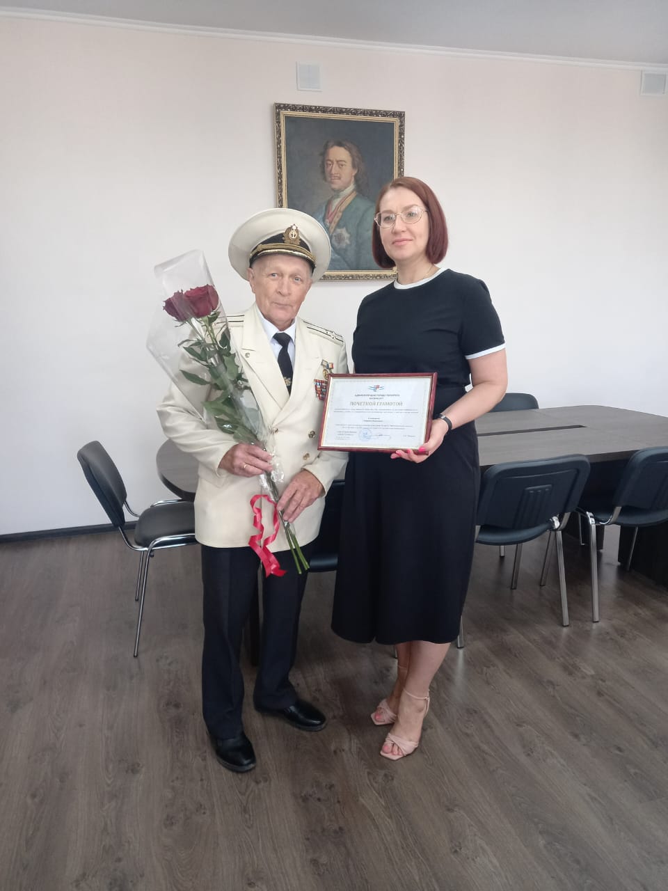 Со знаменательной датой юбиляра поздравила заместитель главы Администрации города Таганрога по организационно-правовым и кадровым вопросам Екатерина Громыко, которая вручила ему Почетную грамоту главы Администрации города Таганрога.