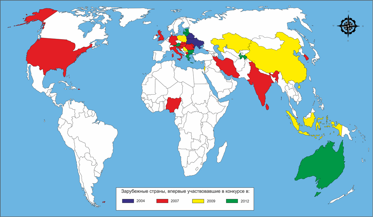 Абхазия, Австралия, Австрия, Азербайджан, Албания, Алжир, Аргентина, Армения, Афганистан, Бангладеш, Бахрейн, Беларусь, Бельгия, Бенин, Болгария, Боливия, Босния и Герцеговина, Бразилия, Бруней, Великобритания, Венгрия, Венесуэла, Вьетнам, Гамбия, Гана, Гватемала, Германия, Греция, Грузия, Дания, Египет, Замбия, Израиль, Индия, Индонезия, Иордания, Иран, Ирак, Ирландия, Исландия, Испания, Италия, Казахстан, Камерун, Канада, Катар, Кения, Кипр, Киргизия, Китай (в т. ч. Гонконг и Китайский Тайбэй), Колумбия, Коморы (Союз Коморских Островов), Конго (Республика Конго), Коста-Рика, Кот-д’Ивуар, Куба, Кувейт, Латвия, Либерия, Ливан, Ливия, Литва, Люксембург, Маврикий, Мадагаскар, Малайзия, Мали, Мальдивы, Мальта, Марокко, Мексика, Мозамбик, Молдова, Монако, Монголия, Мьянма, Намибия, Нигерия, Нидерланды, Никарагуа, Новая Зеландия, Норвегия, Объединенные Арабские Эмираты (ОАЭ), Оман, Пакистан, Панама, Парагвай, Перу, Польша, Португалия, Румыния, Саудовская Аравия, Сальвадор, Северная Македония, Сейшельские Острова (Республика Сейшелы), Сербия, Сингапур, Сирия, Словакия, Словения, Соединенные Штаты Америки (США), Судан, Сьерра-Леоне, Таджикистан, Таиланд, Танзания, Того, Тунис, Туркменистан, Турция, Уганда, Узбекистан, Украина, Филиппины, Финляндия, Франция, Хорватия, Черногория, Чехия, Чили, Швейцария, Швеция, Шри-Ланка, Эквадор, Эсватини, Эстония, Южно-Африканская Республика (ЮАР), Южная Корея (Республика Корея), Южная Осетия, Япония.